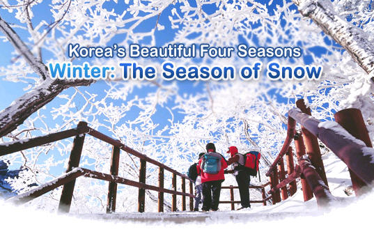 Winter in Korea is usually between December and February, with the average temperature in January, the coldest month, ranging between minus six degrees and three degrees Celsius. The days with the lowest temperatures in the winter are usually between the middle and end of January. In winter, the days are shorter with the sunrise occurring later and the sunset occurring earlier. Usually, a cycle of three days of cold weather followed by four days of warmer days (samhansaon*) is repeated. The mountainous regions in Gangwon-do receive snowfall starting in early winter, with the weather being very cold and dry due to the wind blowing in from Siberia. Major holidays between the months of December and February are Christmas, New Year, and Lunar New Year, and the months of February and early March are the time for graduation ceremonies and the start of school. In rural areas, arable land is left to rest until farming resumes in the spring while some vegetables are grown in vinyl greenhouses. A unique practice in the winter between November and December is gimjang, which is the preparation of large quantities of kimchi to eat throughout winter.